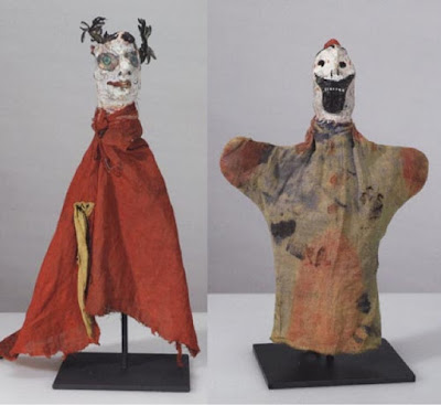 | Between 1916 and 1925 Paul Klee (1879-1940) made some 50 hand puppets for his son, Felix, of which 30 are still in existence. For the heads, he used materials from his own household: beef bones and electrical outlets, bristle brushes, leftover bits of fur and nutshells. Soon he began to sew costumes. These characters and small works, do not pretend to be great art, but at the same time, they are superbly imaginative, sweetly reminiscent of Klee's relationships with his family, and beautifully illustrative of the artistic and social developments of the time. Readers will see the chrological proximity of Dada and Kurt Schwitters's collages in Klee's Matchbox Ghost; the German National caricatures one of the era's more omius political types. An introductory essay tracks the work's links to other avant-garde puppetry and to Klee's sculptural works, and to his connections to the theater. For their part, Klee's son Felix and his grandson Alexander tell the story of how the figures were created. |